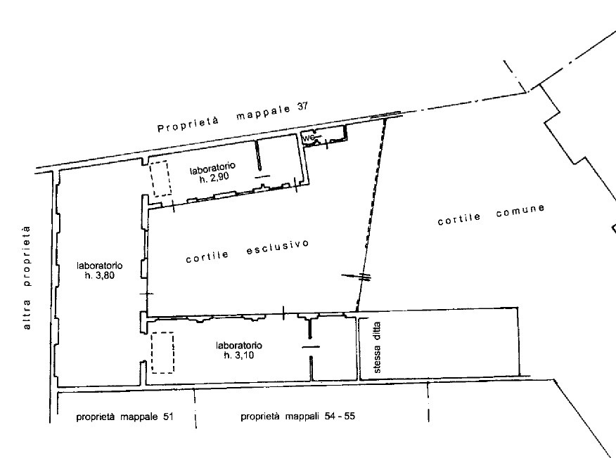 Corso Caio Plinio, nelle immediate vicinanze di via Passo Buole, proponiamo in vendita intero basso fabbricato situato nell'interno cortile con giardino privato e spazio di proprietà per posti auto con possibilità di cambio di destinazione d'uso da laboratorio a residenziale.